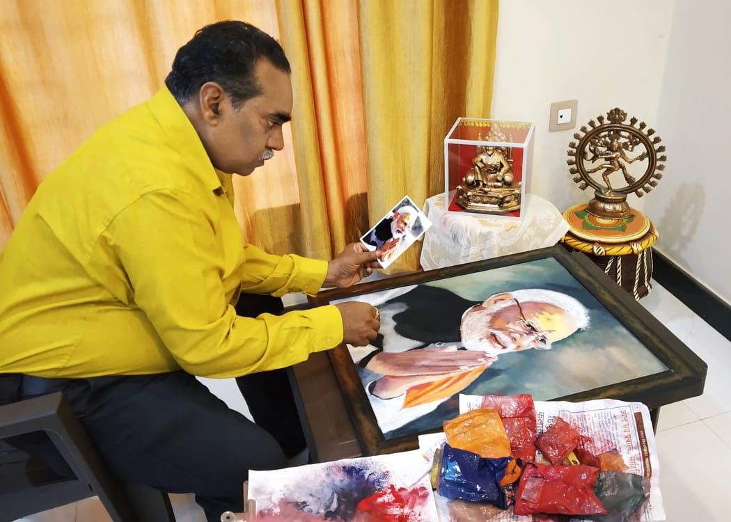 अजित औरवाडकर यांनी नरेंद्र मोदी यांची रांगोळी रेखाटली आहे.अर्धा फूट बाय दोन फूट आकाराची ही रांगोळी आहे.