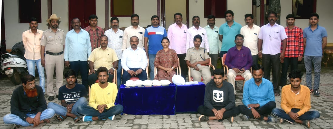 सी इ एन आणि सी सी बी पोलिसांनी धाड टाकत पाच मोबाईल फोन एक किलो 500 ग्राम 32950 रुपयांच्या किंमतीचा गांजा जप्त केला आहे. सी इ एन पोलीस स्थानकाचे निरीक्षक यु एच सातनहळळी यांच्या नेतृत्वाखाली ही धाड टाकण्यात आली आहे.
