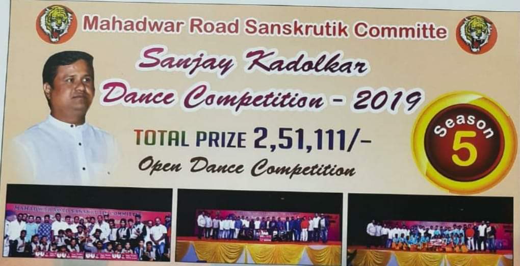 महाद्वार रोड संस्कृतिक कमिटीतर्फे आयोजित संजय कडोलकर डान्स कॉम्पिटिशन 2019 या भव्य बक्षीस रकमेच्या खुल्या नृत्य स्पर्धा उद्या शनिवारी 4 जानेवारीपासून 8 जानेवारी पर्यंत होणार आहे.गेल्या आठवड्यात काही कारणावास्तव पुढे ढकलण्यात आली होती आता शनिवार पासून घेतली जाणार आहे.