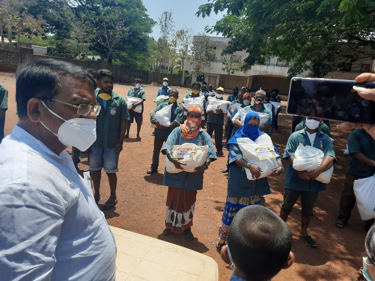 बेळगाव उत्तर मतदार संघाचे आमदार ॲड. अनिल बेनके यांनी आपल्या “कोव्हिड -19 सेवा अभियाना” अंतर्गत मंगळवारी आपल्या मतदारसंघाचा एक्स्टेंशन एरिया अर्थात विस्तारित प्रदेश स्वच्छ ठेवण्यासाठी राबणाऱ्या सुमारे 60 स्त्री-पुरुष पौरकार्मिकांना जीवनावश्यक साहित्याच्या किट्सचे वाटप केले.