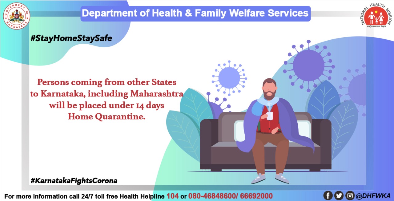 कोरोना विषाणू प्रादुर्भावाच्या पार्श्वभूमीवर राज्याच्या आरोग्य आणि कुटुंब कल्याण खात्याच्या नव्या एसओपीनुसार आता कर्नाटकात येणाऱ्या महाराष्ट्रसह देशातील अन्य सर्व राज्यातील व्यक्तींना सक्तीने 14 दिवस होम काॅरंटाईन व्हावे लागणार आहे.