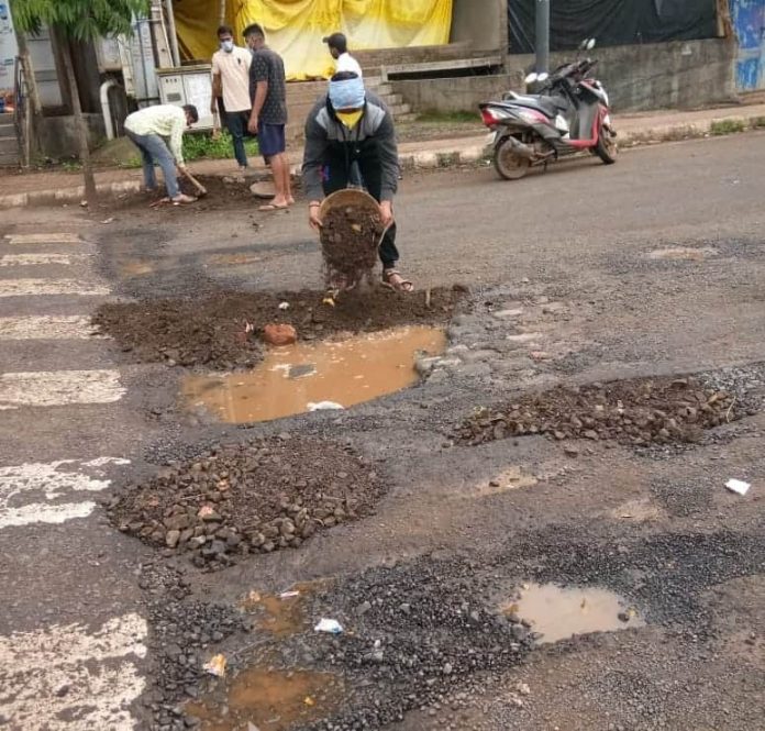 याची दखल घेऊन आम्ही बेळगांवकर सेवेकर संघटनेच्या कार्यकर्त्यांनी आज रविवारी सकाळी श्रमदानाने दगडमातीच्या भरावाने सदर खड्डे बुजवून तात्पुरती डागडुजी केली. या श्रमदानामध्ये परशराम हुबरवाडी, राहूल जांगले, बाळकुष्ण लाड, संभाजी भेकणे व युवराज भांदुर्गे या युवकांचा सहभाग होता.