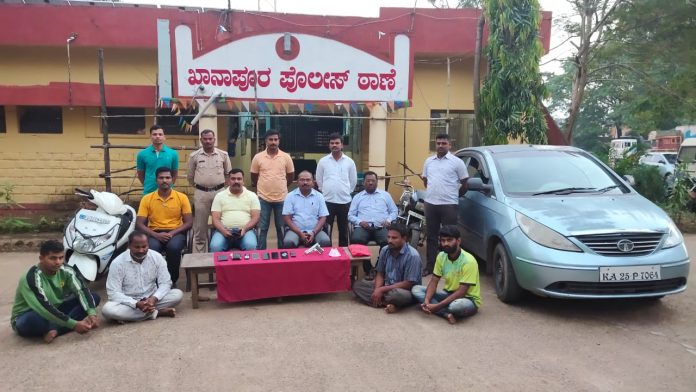 या प्रकरणात तुलसीदास लक्ष्मण जोशी, (वय ३२, रा. कालकुंद्री, ता. चंदगड, जि. कोल्हापूर, महाराष्ट्र), सतीश उर्फ सचिन सिद्दप्पा डवळी (वय २७, रा. कलमेश्वर गल्ली, गुरुदेव गल्ली, वडगाव, जि. बेळगाव), उमेश निंगाप्पा बिलीयळी (वय ३५, रा. बंगारेप्पा बडावणी, घ. न. ३०६, तिसरा क्रॉस, अन्नीगेरी, धारवाड) आणि गुरवय्या शेखरय्या लगमय्यनवर (वय ३१, रा. अंतुर, बेंतुर, ता. जि. गदग) या चौघांना अटक करण्यात आली असून त्यांच्याकडून एक सेमी ऑटो पिस्तूल, ३ जिवंत काडतुसे, मोबाईल संच, ३४ हजार रोख रुपये, टाटा इंडिका कार, २ मोटार सायकल असे साहित्य जप्त करण्यात आले आहे. खानापूर पोलीस स्थानकात या प्रकरणाची नोंद करण्यात आली असून सुरेश शिंगी, बसगौड पाटील, बसगौड नेर्ली, एन. के. पाटील, एस. एस. तुरमुंदी, एन. ए. चंदरगी, आय. एम. नन्नेखान, एस. एच. हादीमनी, मेहबूब दादामलिक, के. जि. किल्लेदार, एस. एस. हुंबी, ए. एम. चिक्केरी, डी. एस. चिक्कमठ, सिद्राम तल्लुर, एस. सी. पुजारी यांनी या कारवाईत सहभाग घेतला.