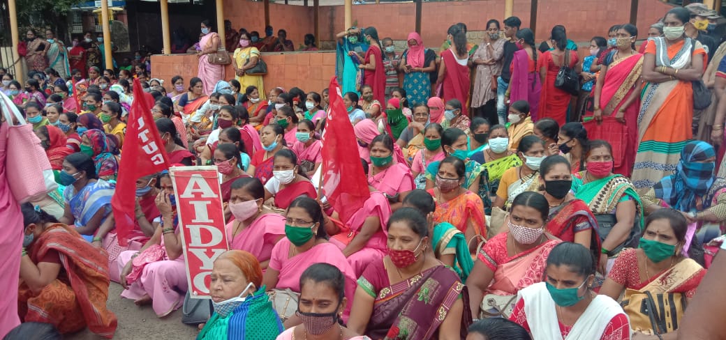 हजारो कामगारांनी बलिदान करून मिळालेले कामगार कायदे मोदी सरकार एका झटक्यात नष्ट करू पाहत आहे. दररोज 8 तास काम मिळावे म्हणून हजारो कामगारांनी आपले बलिदान दिले आहे. मात्र आता 12 तासाचे काम करण्याचा विचार सुरू आहे. खाजगीकरण झपाट्याने होत आहे. देशातील बँका, एलआयसी, बंदरं, विमानतळं, रेल्वे हे सर्व खाजगी करण्याच्या मार्गावर असून त्याला आमचा विरोध आहे. त्याचप्रमाणे गेली 45 वर्ष सातत्याने मागणी करून देखील अंगणवाडी महिलांना नोकरीत कायम करण्यात आलेले नाही. त्यांचा पगार वाढवण्यात आलेला नाही. एकंदर देशात कोणताही विभाग समाधानाने रहात नाही याच्या निषेधार्थ हे आंदोलन आहे, असे ॲड. नागेश सातेरी यांनी स्पष्ट केले.