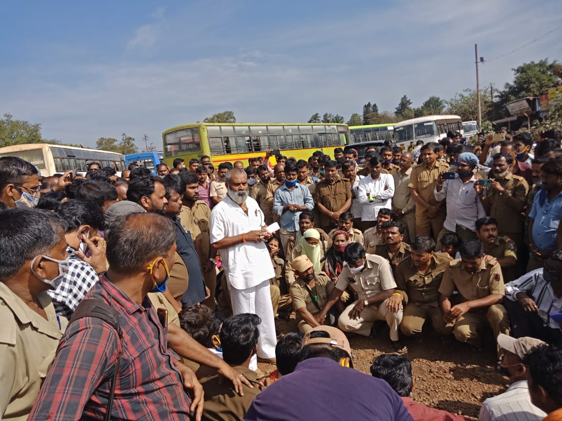 बेळगांव मध्यवर्ती बस स्थानकातील बससेवा स्थगित करून परिवहन कर्मचारी आज आपल्या पोटापाण्याचा विचार न करता आंदोलन करताना दिसत होते.