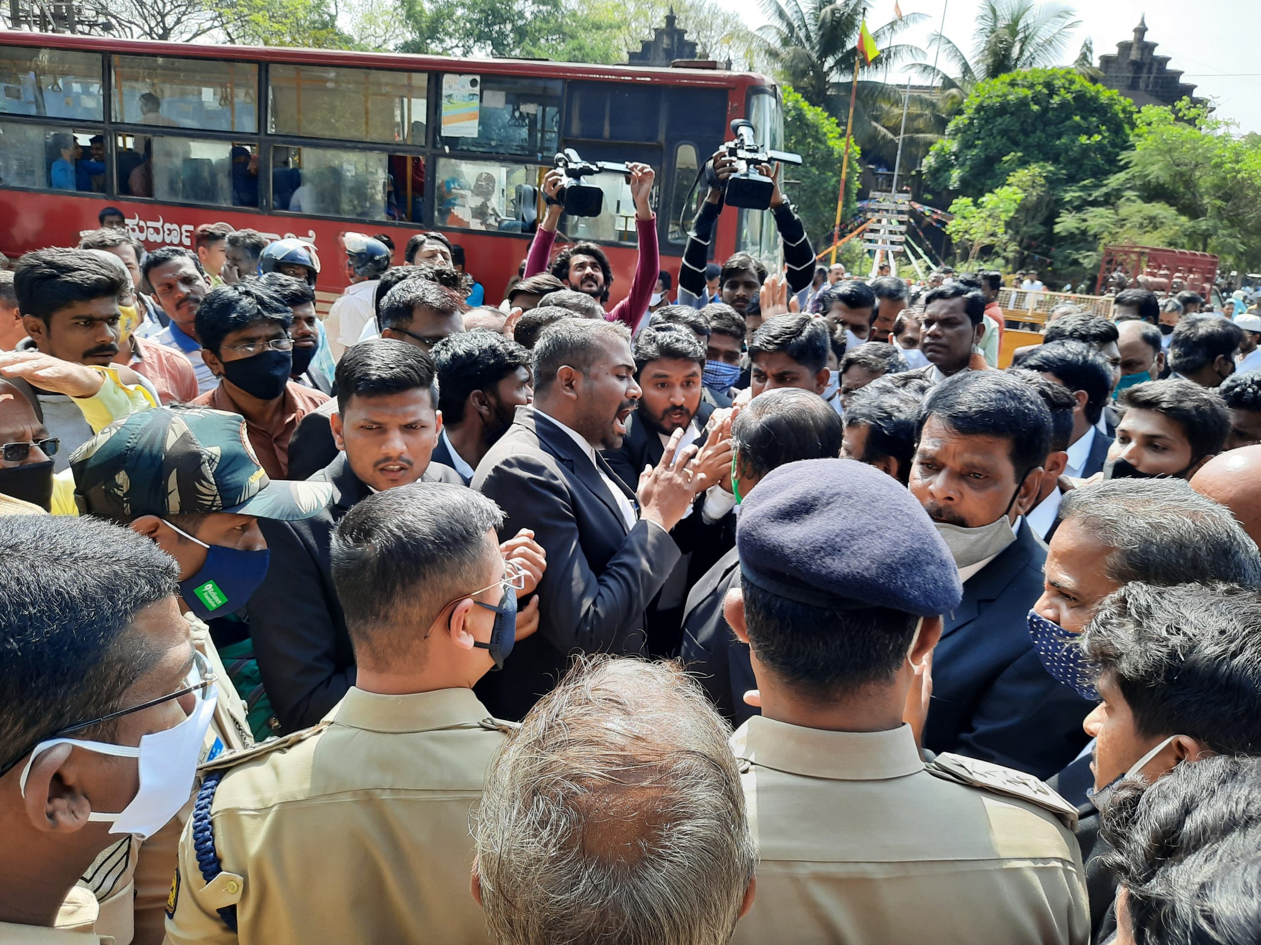 चेतन इराण्णावर आणि इतर वकिलांनी जिल्हाधिकारी कार्यालय आवारात मोठे आंदोलन छेडले. न्यायालय आवारातील रस्ता वाहतूक अडवून धरणे आंदोलनदेखील छेडण्यात आले. संबंधित सीपीआय विरोधात कारवाई करावी, त्यांची बदली करण्यात यावी अशी मागणी वकिलांच्या वतीने करण्यात येत होती.
