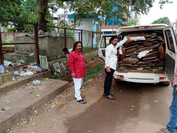 या प्रकाराला आळा करण्यासाठी आवाहन केले जात असले तरी ते थांबलेले नाही. यासाठी श्रीराम सेना व हिंदूराष्ट्र सेनेचे बेळगाव प्रमुख रविकुमार दादा कोकितकर यांनी आज आपल्या 47 व्या वाढदिवसानिमित्त शहरातील रस्त्याकडेला, झाडाखाली, मंदिरानजीक, फूटपाथ कडेला अशा विविध ठिकाणी बेवारस अवस्थेत पडून असलेले देव -देवतांचे फोटो संग्रहित करून त्यांचे विसर्जन केले.