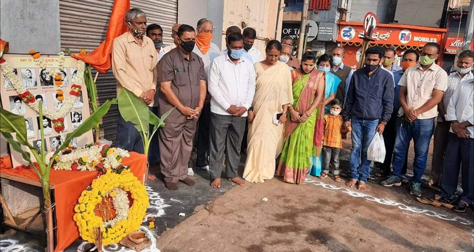 त्यानंतर दोन मिनिटे मौन पाळून हुतात्म्यांना श्रद्धांजली अर्पण करण्यात आली. यावेळी उपस्थितांपैकी शिवसेनेचे उपजिल्हाप्रमुख बंडू केरवाडकर, सुनील देसुरकर, दैनिक तरुण भारतच्या कार्यकारी संचालिका रोमा ठाकूर, नगरसेविका वैशाली भातकांडे, वर्षा आजरेकर, माजी नगरसेवक नेताजी जाधव, राजकुमार बोकडे आदींनी हुतात्म्यांच्या प्रतिमेला पुष्पहार अर्पण करून अभिवादन केले. हुतात्मा चौकातील कार्यक्रमानंतर शहरातील अनसुरकर गल्ली आणि किर्लोस्कर रोड येथे हौतात्म्य पत्करलेल्या हुतात्म्यांना त्याठिकाणी जाऊन अभिवादन करण्यात आले.