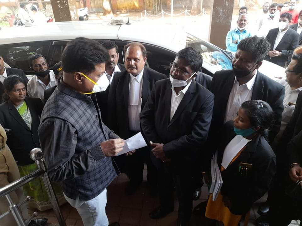 निवेदन सादर करणाऱ्या शिष्टमंडळात अध्यक्ष ॲड. प्रभू यतनट्टी, उपाध्यक्ष ॲड. सुधीर चव्हाण, ॲड. सचिन शिवन्नावर, सरचिटणीस ॲड. गिरीराज पाटील, संयुक्त सचिव ॲड. बंटी कपाही आदींसह बार असोसिएशनचे अन्य सदस्य तसेच दलित नेते उपस्थित होते.