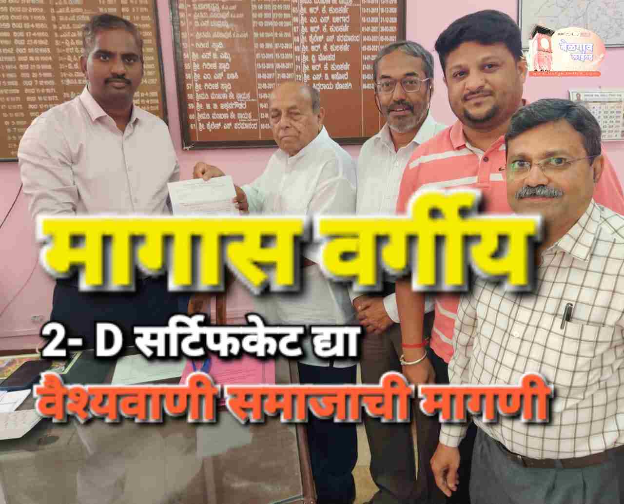 त्यामुळे वैश्यवाणी समाजातील मुले व नोकरीसाठी इच्छुक असलेल्यांचे नुकसान होत आहे. तेंव्हा याची सहानुभूतीपूर्वक दखल घेऊन शासनाच्या आदेशानुसार आम्हा समाज बांधवांना मागासवर्गीय 2डी अंतर्गत वैश्यवाणी जातीचे प्रमाणपत्र द्यावे, ही नम्र विनंती असा आशयाचा तपशील निवेदनात नमुद आहे.