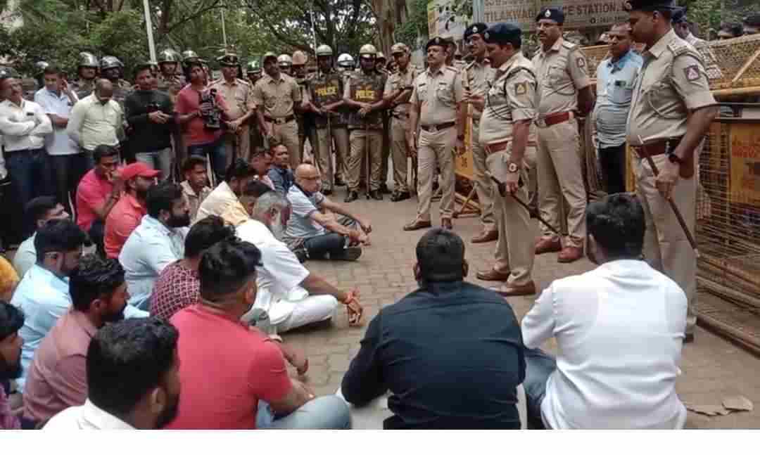 मोबाईल टॉवर बसविण्याच्या वादातून भाग्यनगर येथे गेल्या गुरुवारी नगरसेवक अभिजीत जवळकर यांच्यावर हल्ला झाल्याची घटना घडली होती. त्यानंतर मारहाण करणाऱ्यांना त्वरित अटक करावी या मागणीसाठी काही भाजप नगरसेवकांनी टिळकवाडी पोलीस ठाण्यासमोर धरणे धरले होते. मारहाण प्रकरणी पोलिसांनी भाग्यनगर येथील रमेश पाटील यांच्यासह दोघा जणांना ताब्यात पुढील कारवाई केली होती.