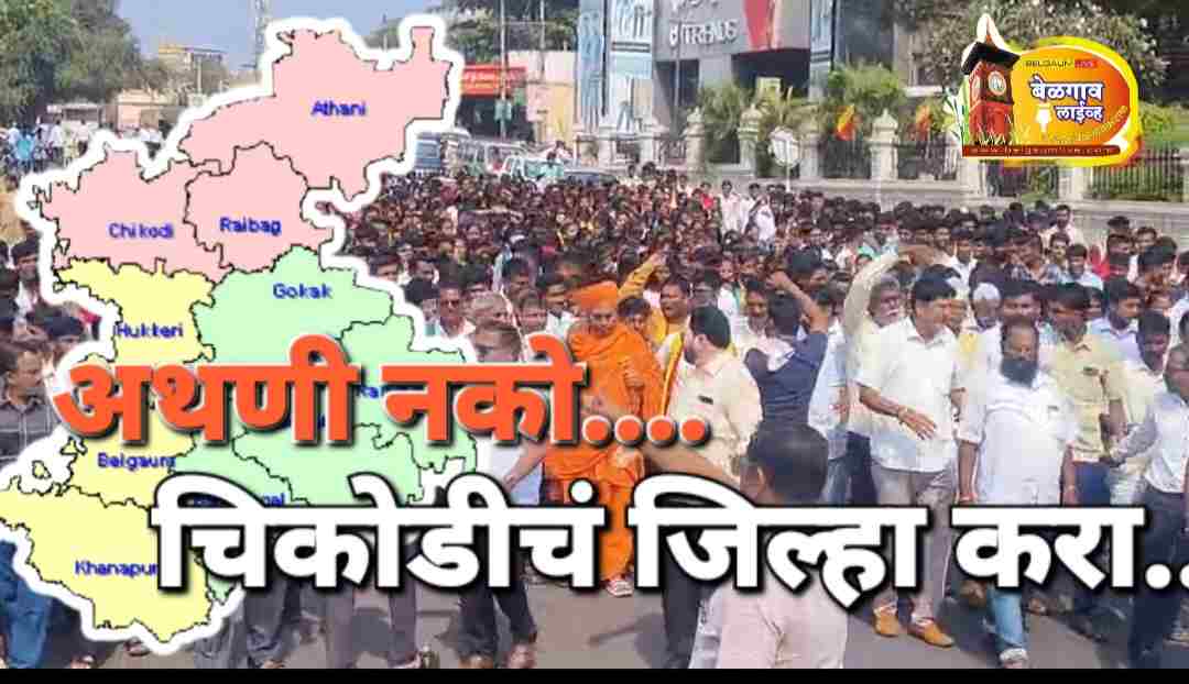 बेळगाव लाईव्ह :बेळगाव जिल्ह्याचे विभाजन करून चिकोडी जिल्ह्याची घोषणा करण्याच्या मागणीसाठी आज चिकोडी शहरात भव्य मोर्चा काढून आंदोलन करण्यात आले. यावेळी अथणी जिल्ह्याची मागणी योग्य नसून पूर्वीपासून मागणी असलेल्या चिकोडी जिल्हा निर्मिती करावी अशी मागणी करण्यात आली.