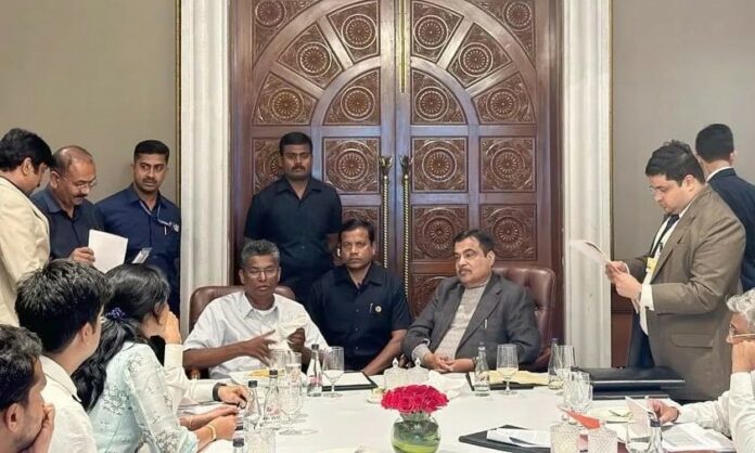बेंगळूर येथील लीला पॅलेसमध्ये काल मंगळवारी पार पडलेल्या राष्ट्रीय महामार्ग योजना प्रगती आढावा बैठकीमध्ये सहभागी होऊन मंत्री सतीश जारकीहोळी यांनी बेळगावसह राज्यातील राष्ट्रीय महामार्ग योजना संदर्भात केंद्रीय मंत्री नितीन गडकरी यांच्या समवेत महत्त्वपूर्ण चर्चा केली. बेळगाव शहरातील रस्त्यांचे महत्त्वाकांक्षी विकास प्रकल्प, नूतन जिल्हाधिकारी कार्यालय संकुल, येथील क्रीडांगणे, राष्ट्रीय महामार्ग मजबुतीकरण आदीकडे थेट लक्ष देण्याची गरज मंत्री जारकिहोळी यांनी केंद्रीय मंत्र्यांकडे व्यक्त केली. त्याला सकारात्मक प्रतिसाद देताना केंद्रीय मंत्री गडकरी यांनी आवश्यक निधीची थेट तरतूद करून दिली जाईल, असे आश्वासन दिले.