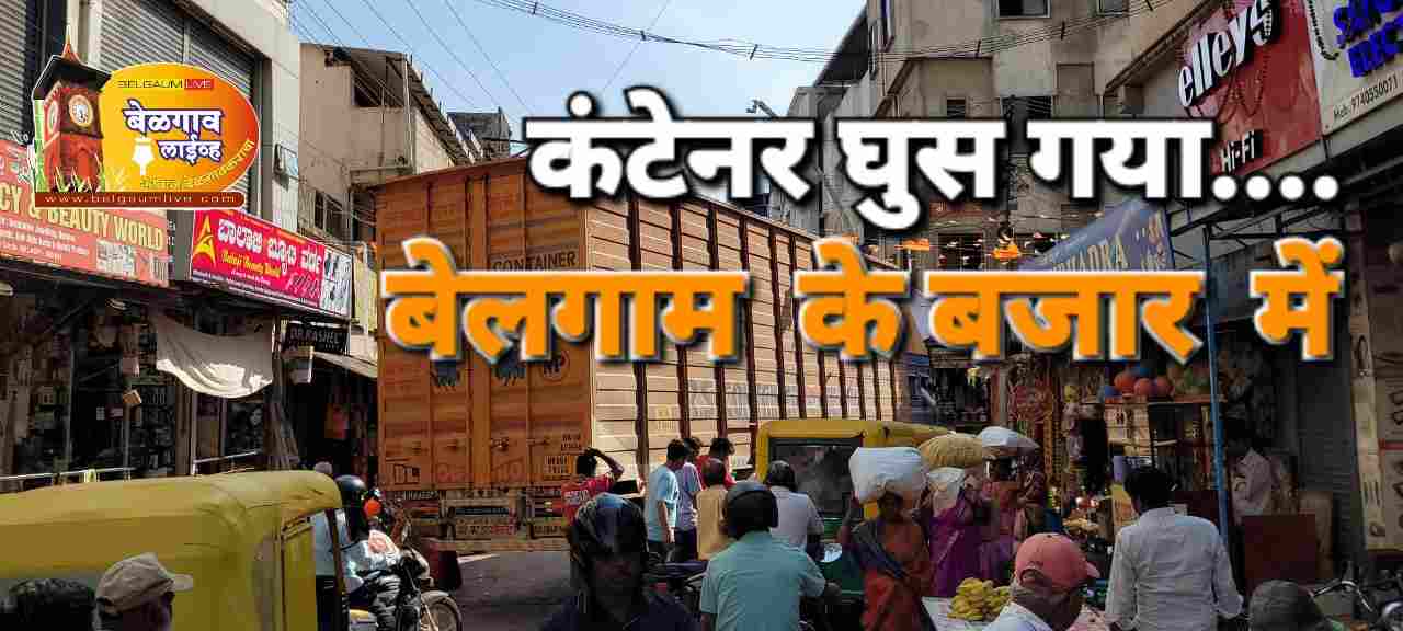 या पद्धतीने ट्रक वगैरे वाहनांमुळे होणाऱ्या वाहतूक कोंडीचा अनुभव असलेल्या बाजारपेठेतील लोकांना आज दुपारी वेगळाच अनुभव आला, जेंव्हा एका भल्या मोठ्या कंटेनरने शहराच्या मध्यवर्तीय भागात प्रवेश केला. आजच्या शनिवारच्या बाजाराच्या दिवशी या पद्धतीने बाजारपेठेत कंटेनर घुसल्यामुळे भेंडी बाजार व पांगुळ गल्ली कॉर्नरवर बराच काळ वाहतुकीची कोंडी होऊन चक्काजाम झाला होता.