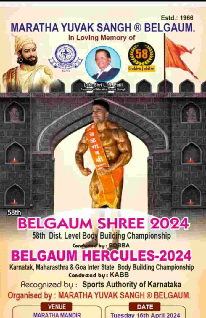 बेळगाव लाईव्ह :मराठा युवक संघ बेळगाव या संघटनेतर्फे केएबीबी आणि बीडीबीबीए यांच्या सहकार्याने येत्या मंगळवार दि. 16 एप्रिल 2024 रोजी दुपारी चार वाजता 58 वी ‘बेळगाव श्री -2024’ या जिल्हा पातळीवरील भव्य शरीर सौष्ठव स्पर्धा, तसेच ‘मि. बेळगाव हर्कुलस -2024’ ही कर्नाटक, महाराष्ट्र व गोवा आंतरराज्य शरीर सौष्ठव स्पर्धा आयोजित करण्यात आली आहे.