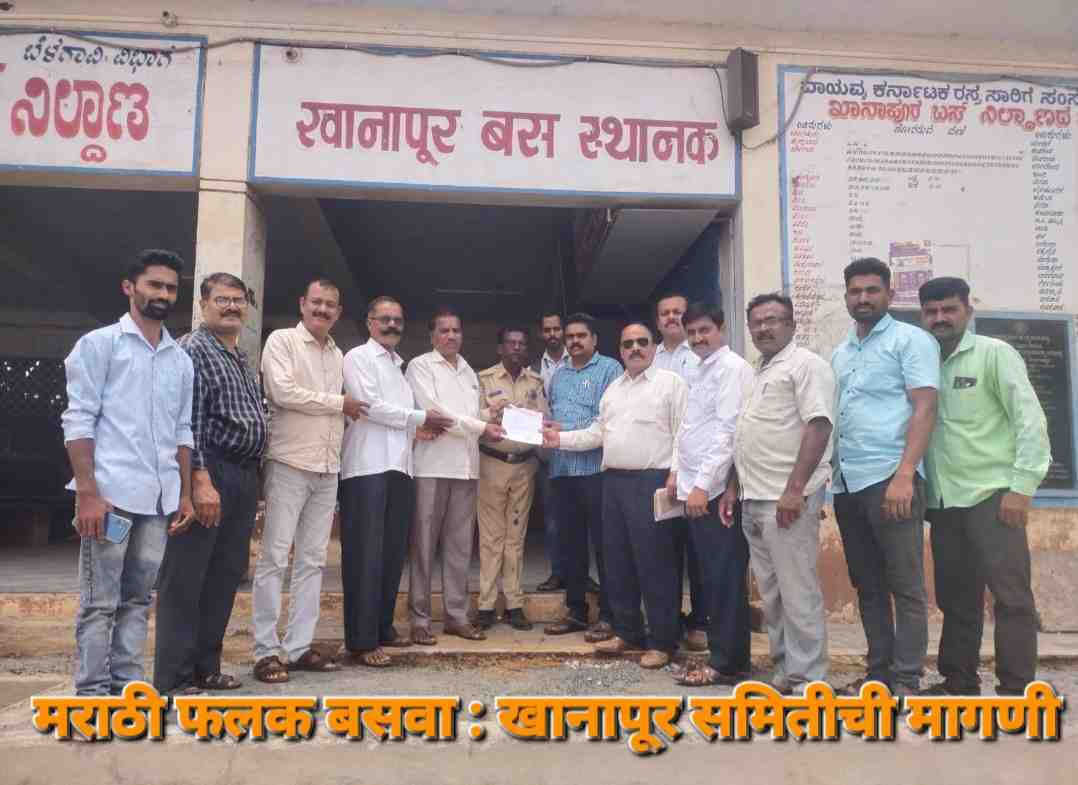 खानापूर तालुका महाराष्ट्र एकीकरण समितीच्या पदाधिकाऱ्यांनी उपरोक्त मागणीचे निवेदन आज बुधवारी सकाळी खानापूर बस स्थानक आगार व्यवस्थापकांना सादर केले. आगार व्यवस्थापकांनी निवेदनाचा स्वीकार करून आपल्या वरिष्ठांशी चर्चा करण्याद्वारे योग्य तो निर्णय घेण्याचे आश्वासन दिले.