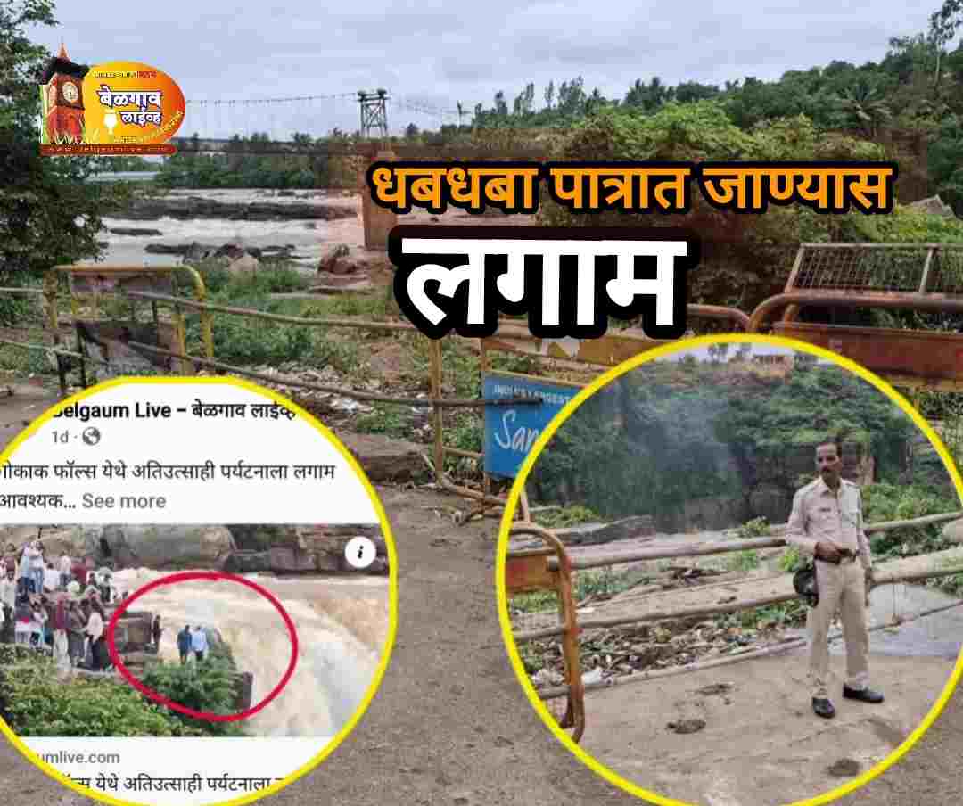 अतिउत्साही पर्यटक रोरावत कोसळणाऱ्या गोकाकच्या धबधब्याजवळ धोकादायकरित्या पर्यटनाचा आनंद लुटणाऱ्या पर्यटकांसंदर्भात बेळगाव लाईव्हने काल सोमवारी ‘गोकाक फॉल्स येथे अतिउत्साही पर्यटनाला लगाम आवश्यक’ या शीर्षकाखाली बातमी प्रसिद्ध केली होती. प्रत्यक्ष व्हिडिओसह प्रसिद्ध झालेल्या या बातमीची दखल घेत आता जिल्हा पोलीस प्रमुखांनी एका आदेशाद्वारे गोकाकच्या धबधब्या नजीक जाण्यास प्रवेश बंदी केली आहे.