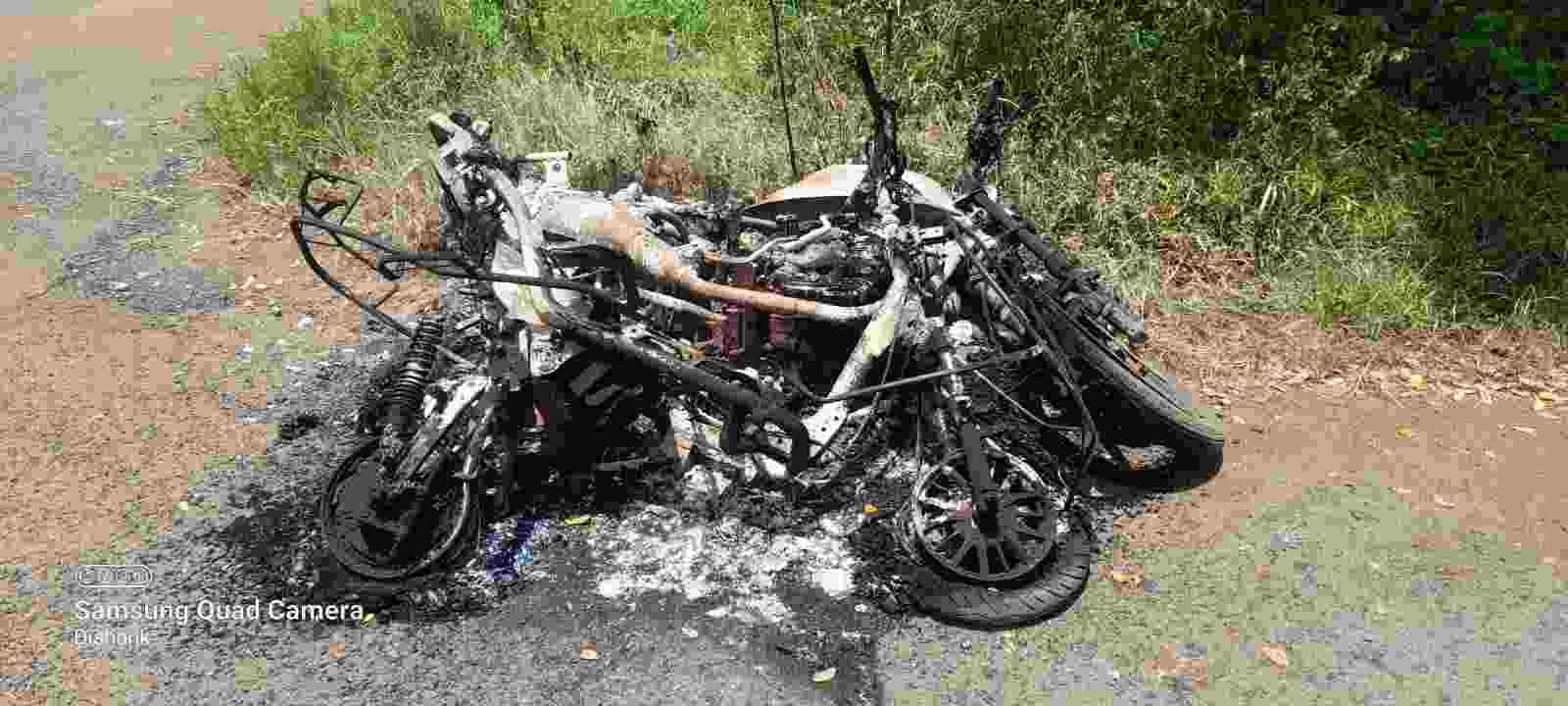 विनायकनगर तिसरा क्रॉस येथे रस्त्याशेजारी उघडकीस आलेला हा प्रकार पाहता काल मध्यरात्री अज्ञातांनी सदर तीन दुचाकी वाहने एकत्र आणून पेटवून दिल्याचा कयास आहे.
