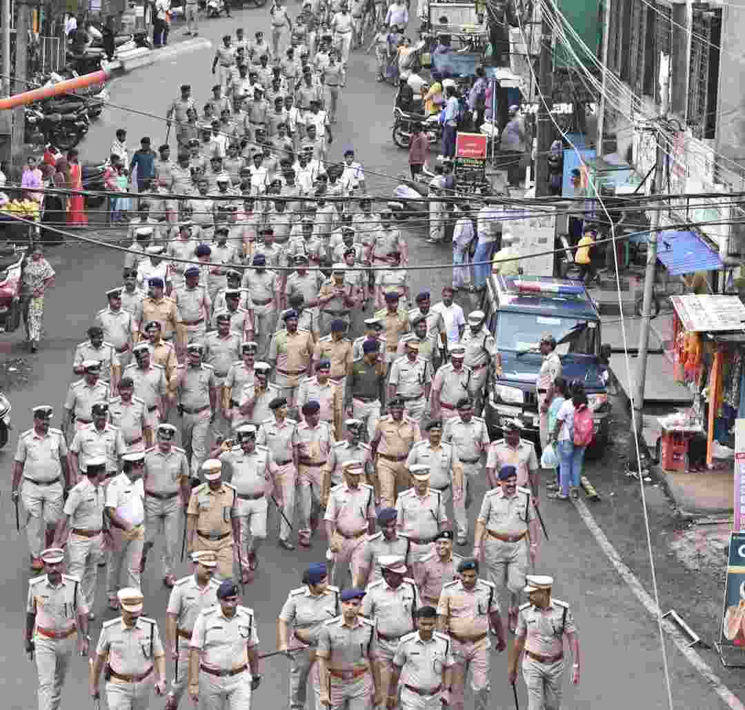 दरम्यान उद्याच्या विसर्जन मिरवणुकीच्या पार्श्वभूमीवर पोलीस, राखीव पोलीस दल आणि ब्लॅक कमांडो यांच्या उपस्थितीत चार दिवसांपासून शहरात पथसंंचालनं सुरू आहेत. कायदा हाती घेणाऱ्या किंवा अनुचित प्रकारात सक्रिय असलेल्यांमध्ये जरब निर्माण व्हावी हा या पथसंचलनांचा उद्देश आहे. त्यानुसार काल रविवारी देखील पोलीस दलाने विसर्जन मिरवणूक मार्गावर भव्य पथसंंचलन काढून शक्ती प्रदर्शन केले.