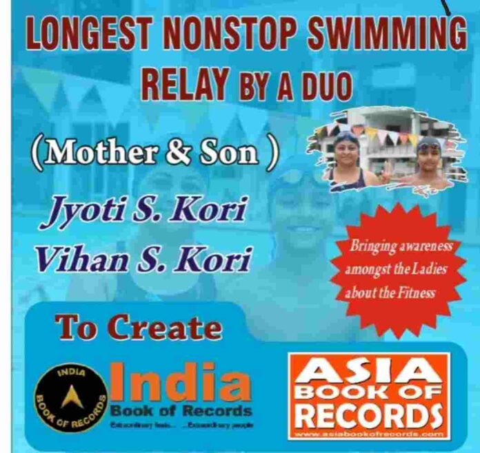 आता हे मायलेक गुरुवारी रिलेच्या स्वरूपात जास्तीत जास्त अंतर अखंड जलतरण करून नवा आशियाई विक्रम प्रस्थापित करण्याचा प्रयत्न करणार आहेत.