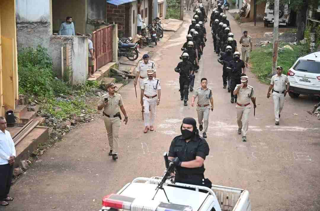 बेळगाव लाईव्ह:बेळगाव शहरातील सार्वजनिक श्री गणेश मूर्तींचे विसर्जन 17 सप्टेंबर रोजी होणार असून श्री गणेश विसर्जन आणि ईद-ए-मिलाद मिरवणुकीच्या पार्श्वभूमीवर अनगोळसह शहरातील अन्य संवेदनशील भागात आज सकाळी ब्लॅक कमांडो स्पेशल फोर्स आणि पोलिसांचे पथसंचलन काढण्यात आले.