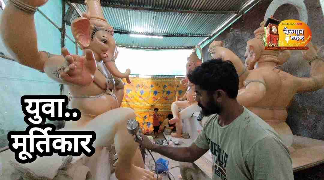बेळगाव लाईव्ह : जिद्द आणि चिकाटी असेल तर कोणतेही कार्य करणे अवघड असले तरीही त्यातून मार्ग काढून यश साधता येते… हि गोष्ट हलगा येथील युवा मूर्तिकार सुशांत लोहार यांच्याकडे पाहिल्यास आपल्याला जाणवते.. वयाच्या १९ व्या वर्षापासूनच मूर्तिकला जपणारा युवा कलाकार आज सार्वजनिक गणेशोत्सव मंडळांसह घरगुती गणेशोत्सव मूर्ती देखील उत्तम पद्धतीने साकारतो.