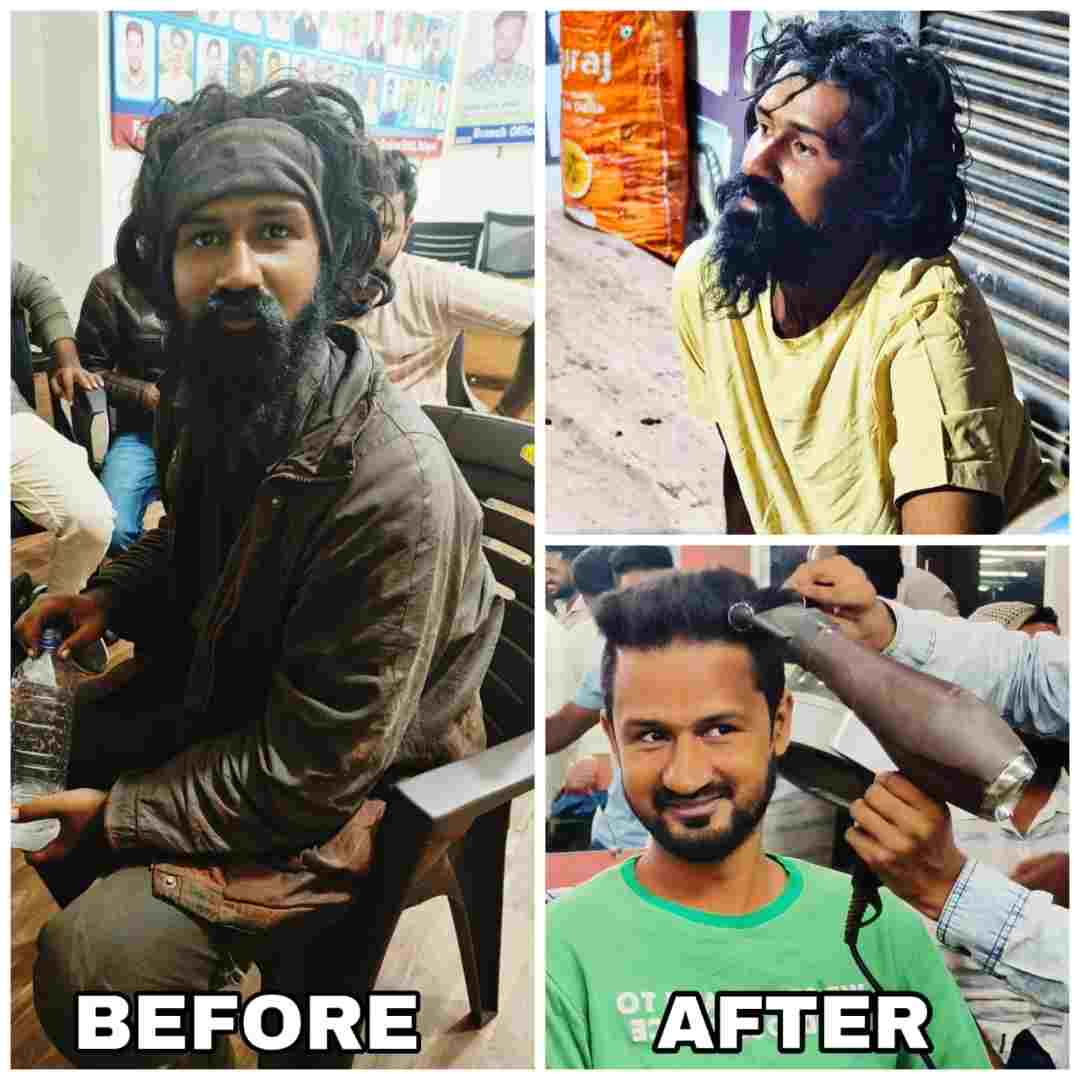 एवढे करून न थांबता सेवा + एकता फाउंडेशनच्या कार्यकर्त्यांनी त्या युवा भिकाऱ्याला सलूनमध्ये नेऊन त्याची दाढी व फॅशनेबल कटिंग करवले. या पद्धतीने स्वतःच्या व्यक्तिमत्त्वात होणारा अमुलाग्र बदल त्या युवकाला सुखावत असल्याचे त्याच्या आनंदी चेहऱ्यावरून दिसत होते.