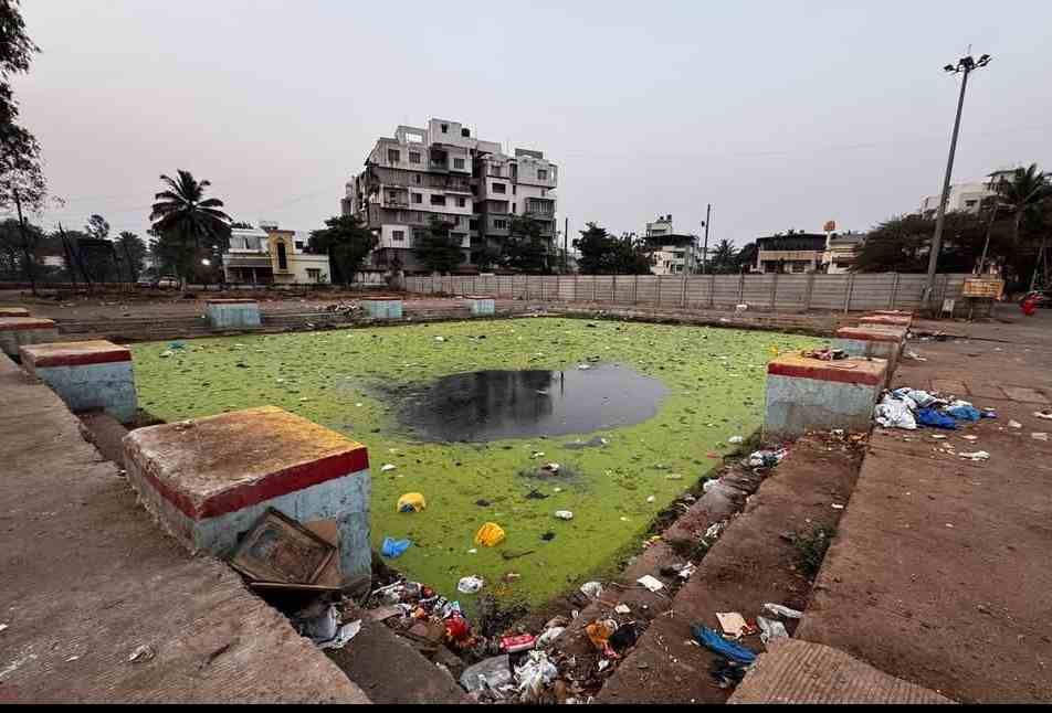 बेळगाव लाईव्ह :बेळगाव महापालिकेच्या दुर्लक्षामुळे रेल्वे ओव्हर ब्रिज जवळील इंद्रप्रस्थनगर येथील जक्कीन होंड तलावाची दुर्दशा झाली असून शेवाळे, प्लास्टिक पिशव्या, केरकचरा साचलेल्या या तलावाची तात्काळ स्वच्छता करण्यात यावी अशी मागणी जागरूक नागरिक व गणेश भक्तांकडून करण्यात येत आहे.