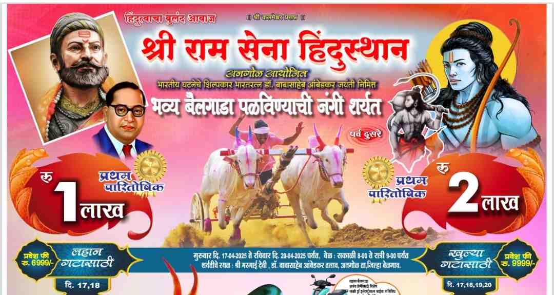 डॉ. बाबासाहेब आंबेडकर जयंतीच्या निमित्ताने श्रीराम सेना हिंदुस्तान अनगोळ विभागाच्या वतीने या जंगी शर्यतीचे आयोजन करण्यात आले आहे.