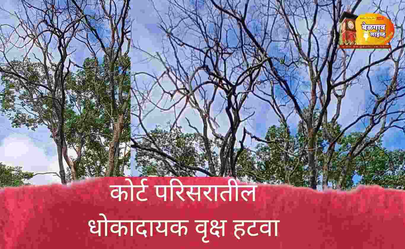 एलआयसी कार्यालयाजवळ हमरस्त्याशेजारी बेळगावच्या जुन्या न्यायालय आवारात असलेला एक मोठा वृक्ष पूर्णपणे वाळून गेला आहे. पूर्वीपासून या वृक्षाच्या ठिकाणीच वाहनांच्या पार्किंगची सोय करण्यात आली आहे.