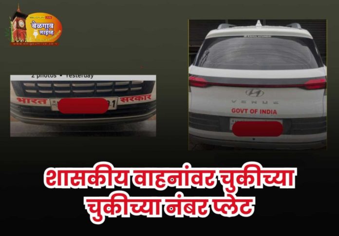 बेळगाव लाईव्ह : केंद्र आणि राज्य सरकारी वाहने वापरण्याचा एक ठराविक शिष्टाचार आहे. मात्र बेळगावमध्ये हा शिष्टाचार धाब्यावर बसून पात्रता नसलेल्या लोकांकडून त्यांच्या वाहनांवर ‘गव्हर्नमेंट ऑफ इंडिया’ किंवा ‘गव्हर्नमेंट ऑफ कर्नाटक’ या पाटीचा सर्रास वापर केला जात असल्यामुळे सखेद आश्चर्य व्यक्त होत आहे. तसेच पोलीस प्रशासनाने याकडे गांभीर्याने लक्ष देण्याची गरज व्यक्त केली जात आहे.
