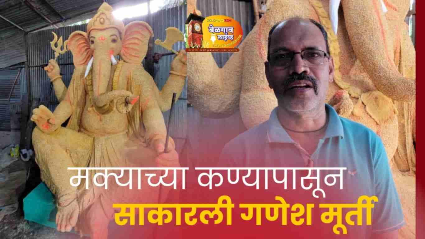 बेळगाव शहरात गणेशोत्सवाच्या आगमनासाठी जोरदार तयारी सुरू आहे. विविध प्रकारच्या मूर्ती तयार केल्या जात आहेत. मात्र, यावर्षी एका मूर्तिकाराने मक्याच्या कण्यांचा वापर करून पर्यावरणपूरक मूर्ती बनवून सर्वांचे लक्ष वेधले आहे.