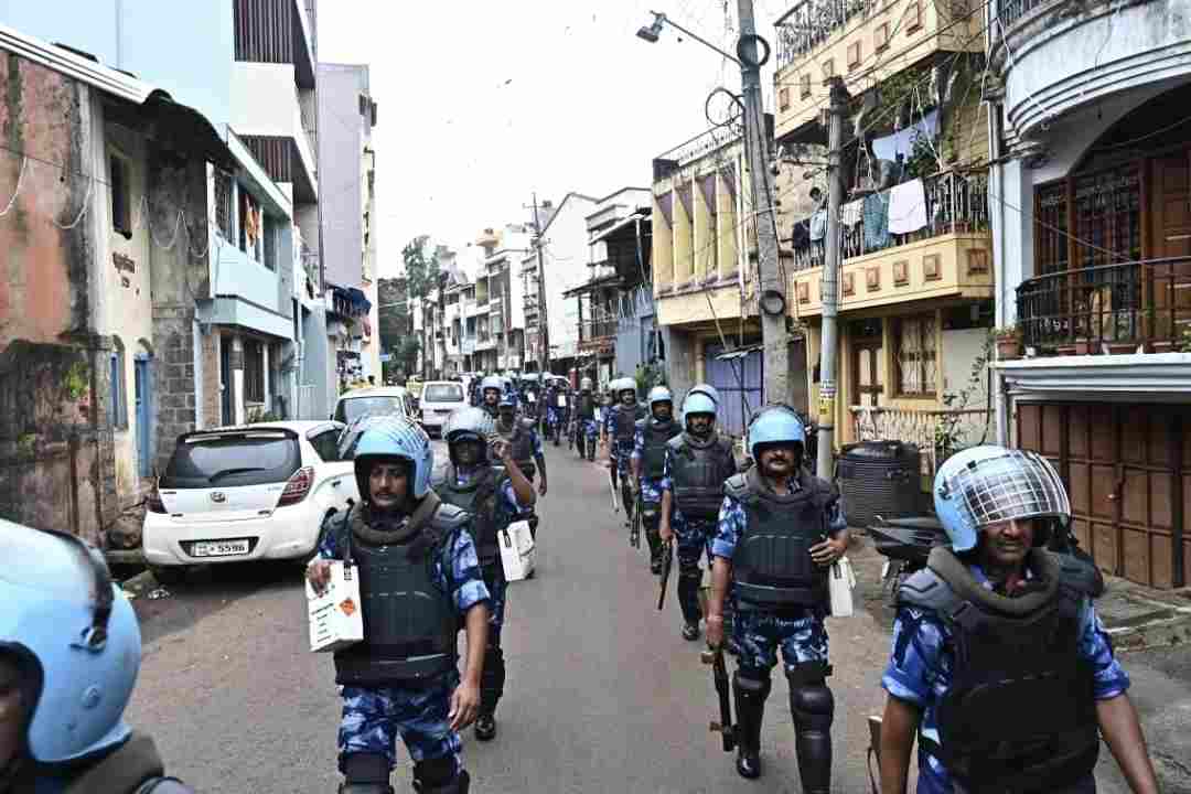 पोलीस प्रशासनाकडून सर्वत्र चोख बंदोबस्त ठेवण्यात आला आहे. शहराच्या संवेदनशील भागात पोलीस बंदोबस्त वाढविण्याच्या दृष्टीने पावले उचलण्यात आली आहेत. त्याचबरोबर आज बुधवारी श्री गणेश चतुर्थी दिवशी सकाळी विविध भागांमध्ये रॅपिड ॲक्शन फोर्स आणि स्थानिक पोलीस अधिकारी व पोलीस कर्मचाऱ्यांचे पथसंचलन काढण्यात आले.