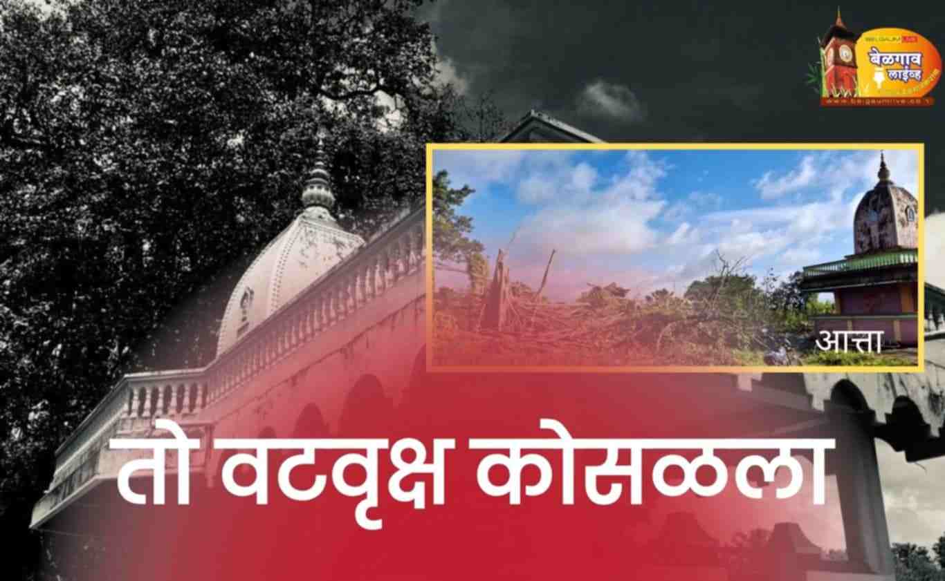 बेळगाव लाईव्ह : चन्नेवाडी (ता. खानापूर, जि. बेळगाव) येथील श्री कलमेश्वर मंदिर परिसरातील जुना शतायुषी वटवृक्ष नुकत्याच झालेल्या जोरदार पाऊस वाऱ्यामुळे अखेर मुळासकट कोसळला असून इतिहासाची साक्ष देणारा हा महाकाय वृक्ष उन्मळून पडल्यामुळे हळहळ व्यक्त होत आहे.