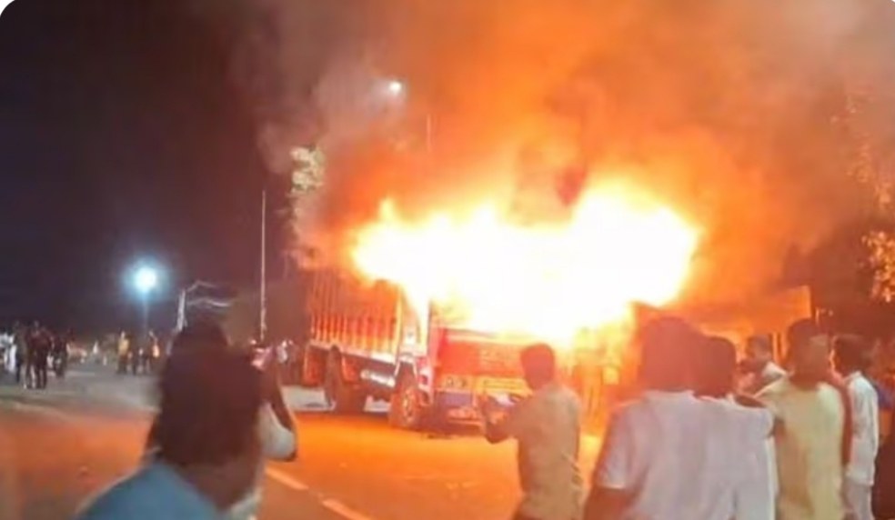 बेळगाव लाईव्ह: रायबाग तालुक्यातील कुडचीकडून हैद्राबादकडे गोमांसाची वाहतूक सुरू असल्याची माहिती मिळताच नागरिकांनी संताप व्यक्त करून चक्क लॉरीलाच आग लावल्याची घटना कागवाड तालुक्यातील ऐनापूर येथे सोमवारी रात्री घडली.