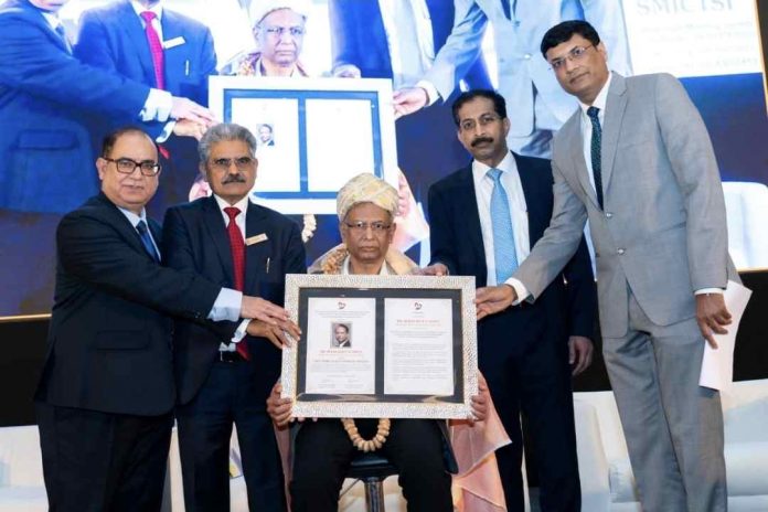 बेळगाव लाईव्ह :डॉ. एम. डी. दीक्षित यांना जीवन गौरव पुरस्कार प्रदान करताना डॉ. सत्तकी नंबाला, डॉ. युगल मिश्रा, डॉ. रजनीश मल्होत्रा, हुसम भालकी आदी.