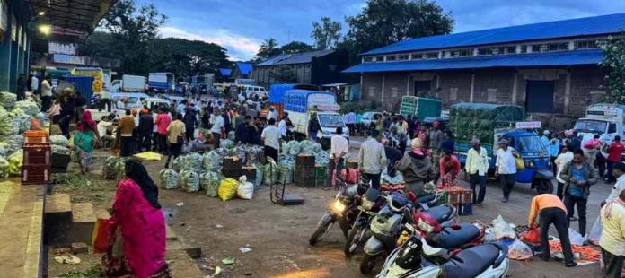 बेळगाव लाईव्ह :राज्याच्या पणन खात्याने व्यापारी परवाना रद्द करून जय किसान खाजगी होलसेल भाजी मार्केटवर बंदी घातल्यामुळे बेळगाव कृषी उत्पन्न बाजार समितीचे (एपीएमसी) होलसेल भाजी मार्केट आज बुधवार सकाळपासून पूर्ण क्षमतेने सुरू झाले आहे. त्यामुळे हे भाजीमार्केट खरेदी-विक्रीच्या व्यवहाराने गजबजून गेलेले पहावयास मिळत आहे.