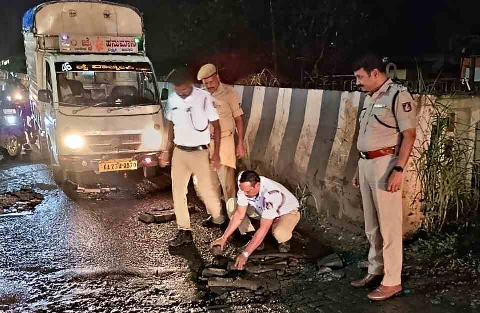 रात्रीच्यावेळी येथून जाताना अपघाताची शक्यता अधिक असते. ही बाब वाहतूक विभागाचे एसीपी जोतिबा निकम यांच्या लक्षात आली. त्यांनी तिघा वाहतूक पोलिसांना घेऊन येथील रस्त्यावरील खड्डे बुजवले.