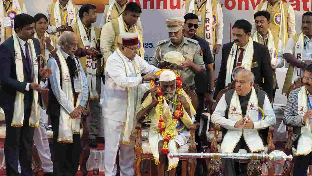 बेळगावच्या राणी चन्नम्मा विद्यापीठाचा 14 वा पदवीदान सोहळा आज मंगळवारी सकाळी सुवर्ण विधानसौध येथे दिमाखात पार पडला. याप्रसंगी पर्यावरण व ग्रामीण विकासातील प्रेरणादायक कार्यासाठी शिवाजी कागणीकर यांना राज्यपाल थावरचंद गहलोत यांच्या हस्ते मानद डॉक्टरेट पदवी प्रदान करून सन्मानित करण्यात आले. या पदवीदान सोहळ्यानंतर डॉ. कागणीकर बेळगाव लाईव्हशी बोलत होते.