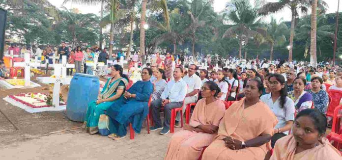 गोल्फ कोर्सजवळील जुन्या स्मशानभूमीत झालेल्या प्रार्थना सेवेत मुख्य याजक म्हणून रेव्ह. फा. विजय मेंडिथ यांनी सेवा बजावली. त्यांच्यासोबत फा. नेल्सन पिंटो, फा. मायकेल फर्नांडिस, फा. अल्बर्ट डिसोझा, फा. राजेंद्र प्रसाद आणि फा. डेनिस रॉड्रिग्स सहभागी झाले होते. आपल्या प्रवचनात फा. सिरिल ब्रॅग्स यांनी उपस्थितांना पृथ्वीवरील जीवन हे तात्पुरते असल्याची जाणीव करून दिली. “आपण स्मशानभूमीत प्रार्थना करत असताना दिवंगत आत्मे आपल्याला स्मरण करून देतात की उद्या आपलीही पाळी येईल. त्यामुळे चांगल्या कर्मांद्वारे आणि प्रार्थनेद्वारे आपण नेहमी मृत्यूसाठी सज्ज राहिले पाहिजे, कारण मृत्यू हा प्रत्येकासाठी अटळ आहे,” असे त्यांनी सांगितले.