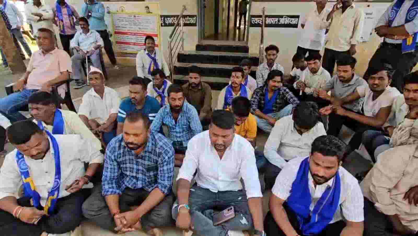 बेळगाव लाईव्ह : हिंडलगा ग्रामपंचायत हद्दीतील डाॅ. मांजरेकर प्लॉटमधील मागासवर्गीयांसाठी राखीव असलेले भू-खंड त्यांना वितरित केले जात नसल्याच्या निषेधार्थ दलित समाज बांधवांनी आज सोमवारी सकाळी हिंडलगा ग्रा. पं. कार्यालयासमोर धरणे सत्ताग्रह करून जोरदार आवाज उठविला.