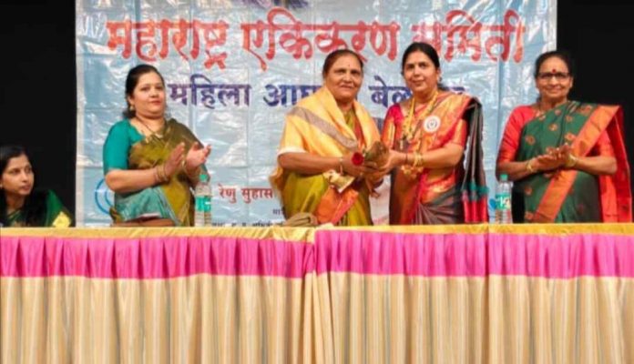 महाराष्ट्र एकीकरण समिती महिला आघाडी, बेळगाव यांच्यातर्फे आयोजित हळदी-कुंकू समारंभ सोमवारी सायंकाळी लोकमान्य रंगमंदिर, कोनवाळ गल्ली येथे विविध उपक्रमांसह उत्साहात पार पडला त्या प्रमुख वक्त्या म्हणून या कार्यक्रमात बोलत होत्या.