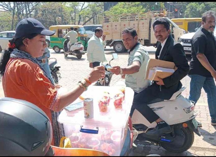 बेळगाव लाईव्ह : वाढत्या महागाईच्या काळात संसाराला हातभार लावण्यासाठी पूजा नावाची एक कष्टकरी महिला बेळगावच्या कोर्ट आवारात फ्रूट सॅलड विक्रीचा व्यवसाय करत आहे. पहाटेपासून घराची जबाबदारी आणि मुलाची शाळा सांभाळून त्या जिद्दीने हा व्यवसाय चालवत आहेत.