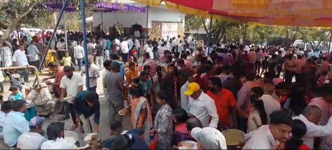 बेळगाव लाईव्ह : बेळगावजवळील कणबर्गी येथील श्री सिद्धेश्वर मंदिरात महाशिवरात्रीच्या निमित्ताने दरवर्षीप्रमाणे यंदाही भव्य महाप्रसादाचे आयोजन करण्यात आले होते. हजारो भाविकांनी रांगा लावून प्रसादाचा लाभ घेतला असून, सुशोभित गाड्यांची मिरवणूक आणि विशेष पूजेनंतर सुरू झालेला हा सोहळा सायंकाळी उशिरापर्यंत सुरू होता.
