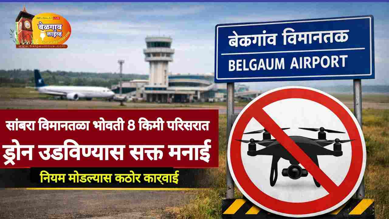 बेळगाव शहरा जवळील सांबरा विमानतळ परिसरात ड्रोन उडविण्यावर कडक निर्बंध घालण्यात आले आहेत. नागरी विमान वाहतूक महासंचालनालयाने (डीजीसीए) विमानतळाभोवतीचा ०८ किलोमीटरचा परिसर यापूर्वीच ‘रेड झोन’ म्हणून घोषित केला आहे.