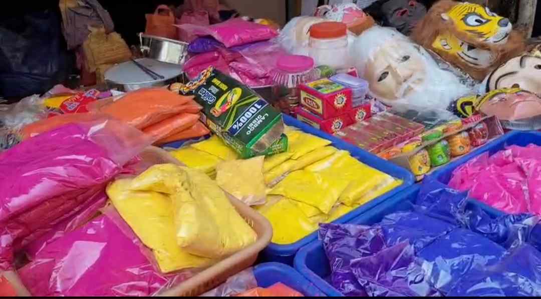दुकानदार, विक्रेत्यांकडून विविध प्रकारचे रंग, गुलाल, रंगीत पावडर, पाण्याच्या पिचकाऱ्या, फुगे, आकर्षक मुखवटे, टोपी टी-शर्ट वगैरे विविध साहित्य विक्रीसाठी ठेवण्यात आले आहे. या साहित्याच्या खरेदीसाठी नागरिक तसेच युवा व बालचमुची गर्दी होत आहे. यंदा रासायनिक रंगापेक्षा नैसर्गिक आणि त्वचेला अपाय न करणाऱ्या रंगांना ग्राहकांनी पसंती द्यावी, असे आवाहनही केले जात आहे.