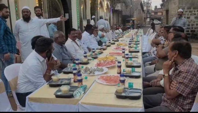 बेळगाव लाईव्ह : बेळगावमधील शहापूर येथील नवी गल्लीत रमजाननिमित्त आयोजित इफ्तार कूट सर्वधर्मसमभावाचे प्रतीक ठरले. येथील जुम्मा मशिदीत हिंदू आणि मुस्लिम बांधवांनी एकत्र येत एकात्मतेचा संदेश देत सामाजिक सलोख्याची नवी उंची गाठली.