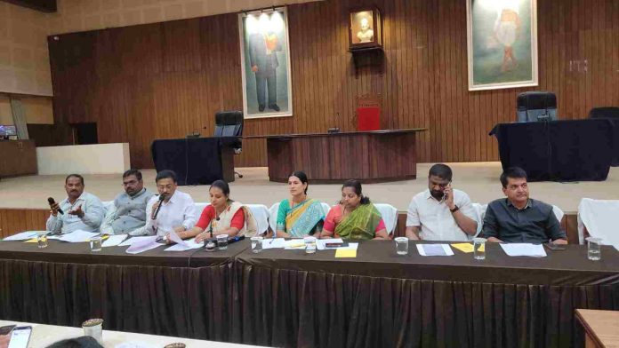 बेळगाव लाईव्ह : बेळगाव महानगरपालिकेच्या प्रशासकीय बैठकीत आज शहरातील रखडलेली विकासकामे, ड्रेनेजची दुरवस्था आणि हेस्कॉमच्या ढिसाळ कारभारावरून नगरसेवकांनी प्रशासकीय अधिकाऱ्यांना चांगलेच धारेवर धरले. महापौर प्रीती कामकर यांच्या अध्यक्षतेखाली पार पडलेल्या या बैठकीत जनसामान्यांच्या प्रश्नांवरून लोकप्रतिनिधींनी आक्रमक पवित्रा घेतल्याचे पाहायला मिळाले.