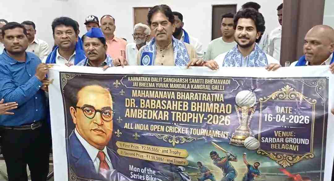 बेळगाव लाईव्ह :कर्नाटक दलित संघर्ष समिती भीम वादी आणि जय भीम युवक मंडळ, कंग्राळ गल्ली बेळगाव यांच्यातर्फे भारतरत्न डॉ. बाबासाहेब आंबेडकर यांच्या 135 व्या जयंतीनिमित्त येत्या गुरुवार दि. 16 एप्रिल 2026 पासून ‘महामानव भारतरत्न डॉ. बाबासाहेब भीमराव आंबेडकर ट्रॉफी -2026’ या भव्य बक्षीस रकमेच्या अखिल भारतीय खुल्या टेनिसबॉल क्रिकेट स्पर्धेचे आयोजन करण्यात आले आहे, अशी माहिती बेळगाव उत्तरचे आमदार असिफ (राजू) सेठ यांनी दिली.