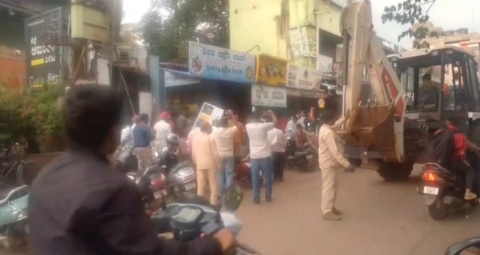 बेळगाव लाईव्ह : बेळगावमधील आरपीडी कॉलेज रोडवरील फुटपाथवर अतिक्रमण करणाऱ्या दुकानदारांवर महानगरपालिकेने मंगळवारी सायंकाळी धडक कारवाई केली. पादचाऱ्यांच्या मार्गात अडथळा ठरणाऱ्या अनधिकृत टपऱ्या आणि बांधकामे हटवून प्रशासनाने अतिक्रमणधारकांना चांगलाच दणका दिला आहे.